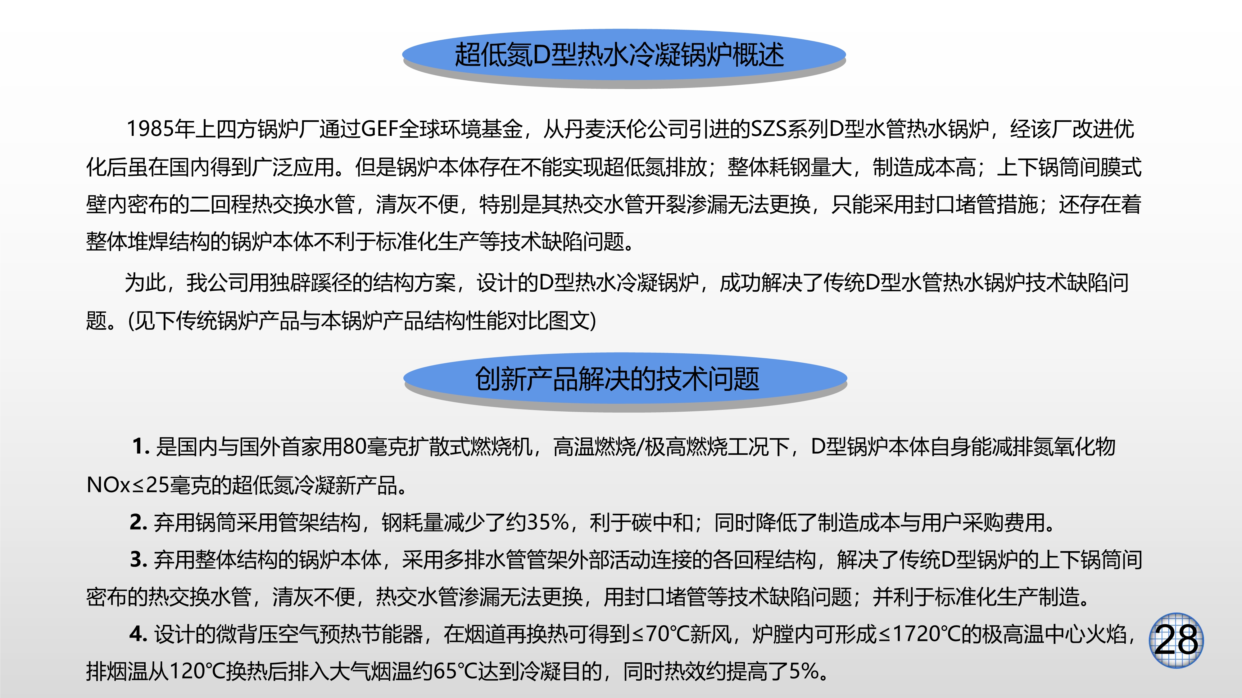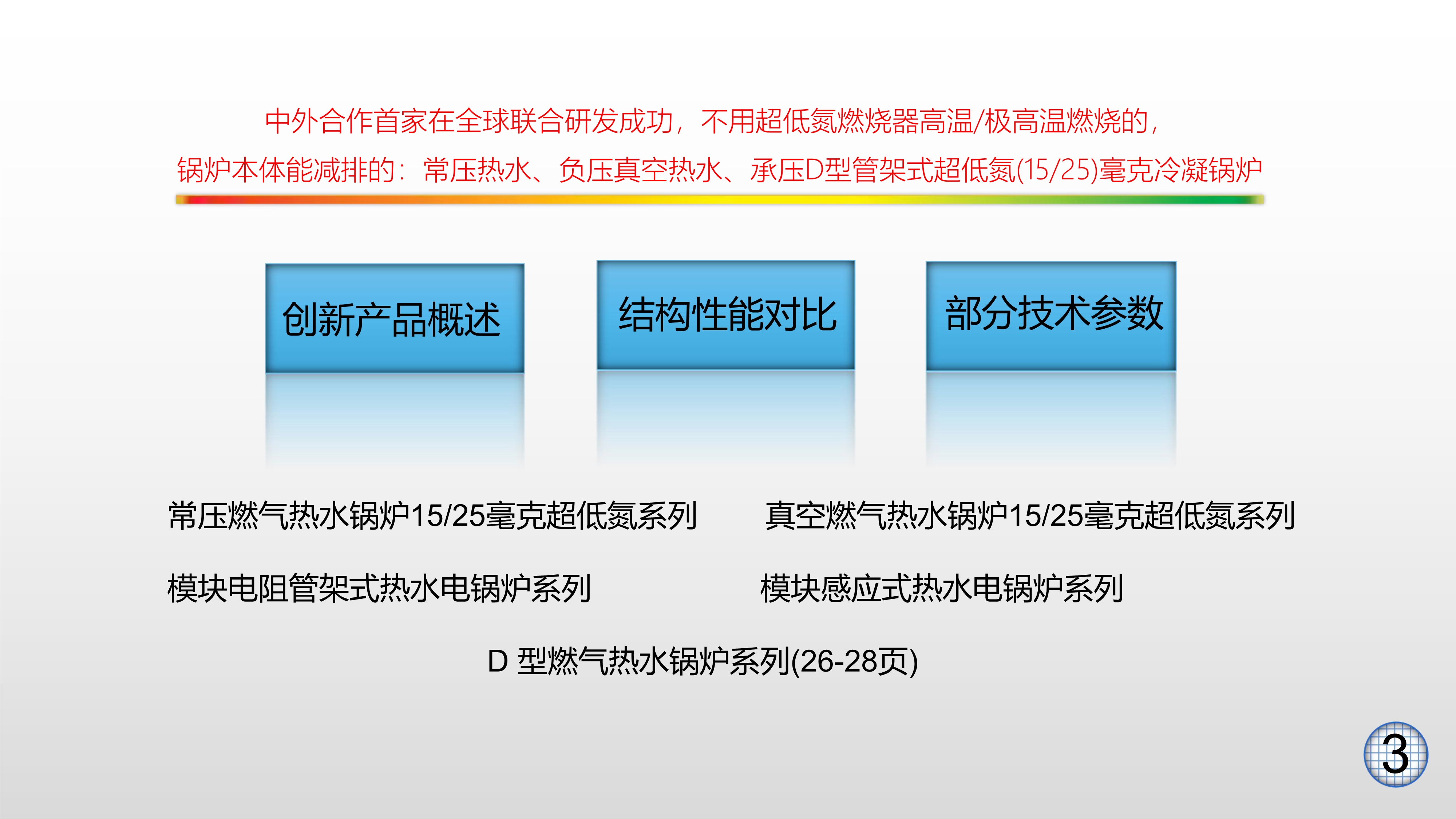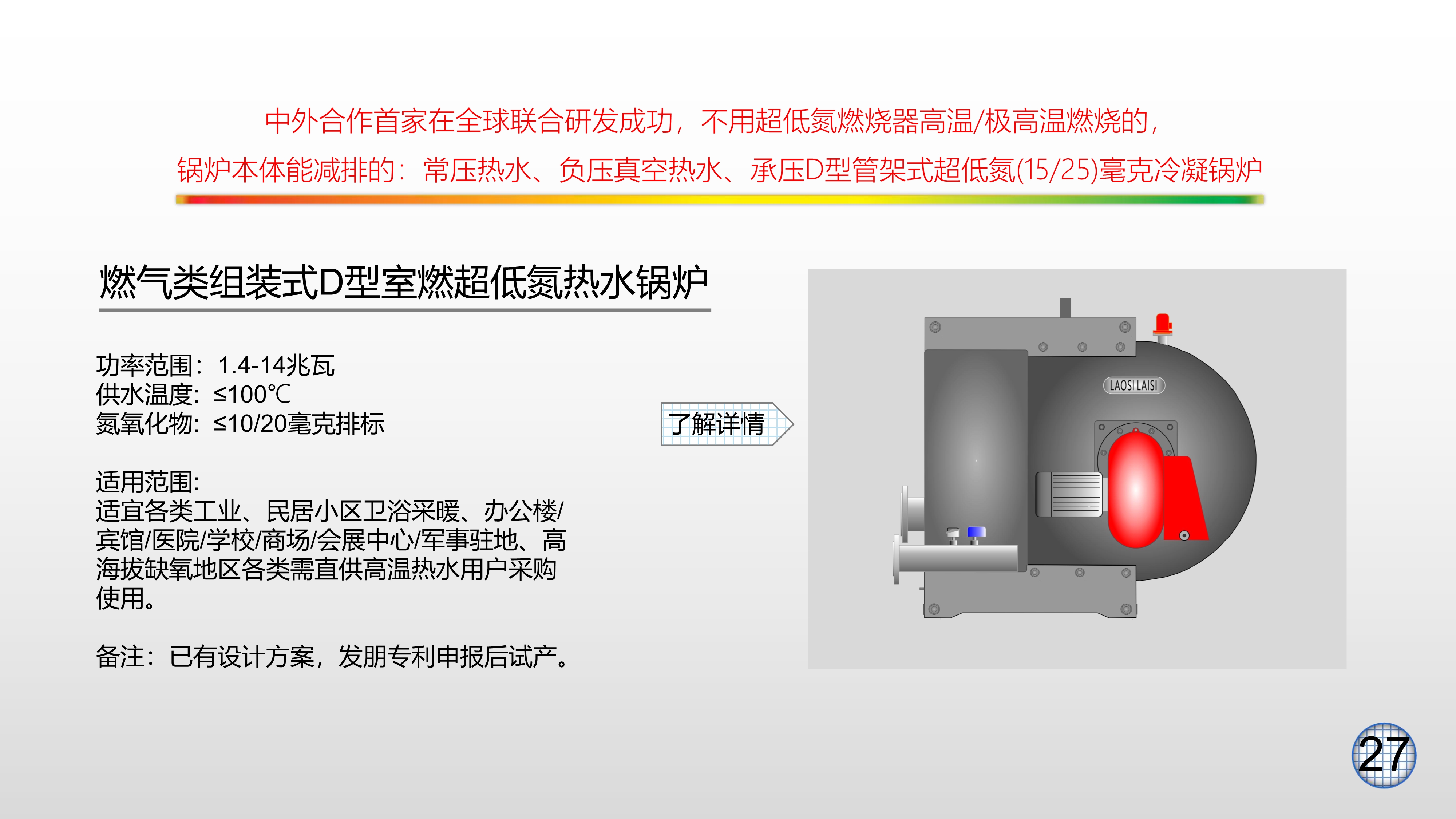 公司主要生産(chǎn)經營燃油、燃氣、電加熱三大系列的蒸汽鍋爐、常壓熱水爐、真空鍋爐/真空熱水鍋爐、熱載體導(dǎo)熱油鍋爐、不鏽鋼飲水鍋爐、開水爐,蒸汽發生器,煙氣器等産(chǎn)品。